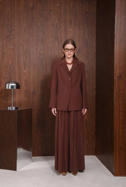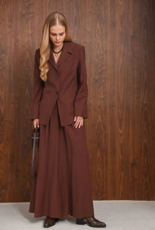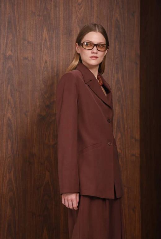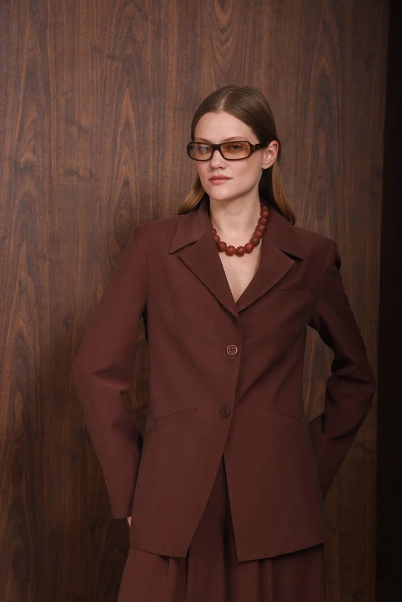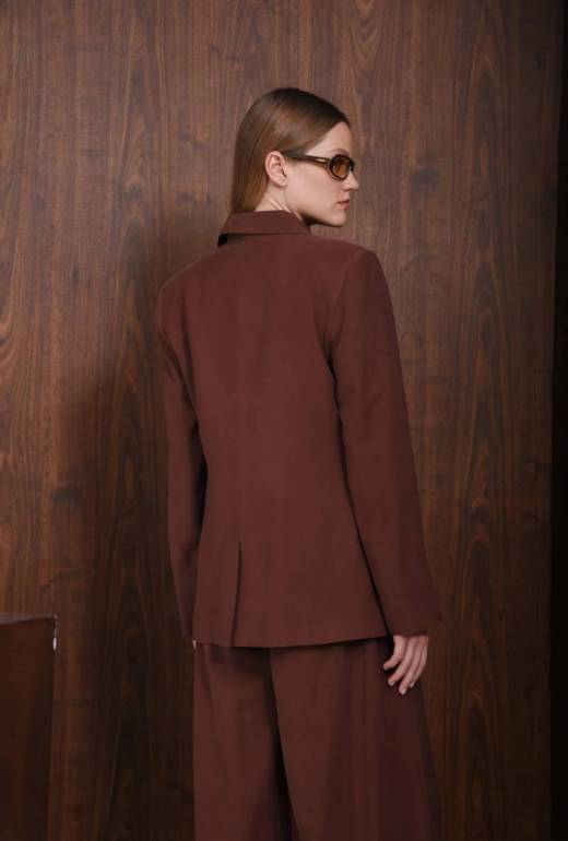 Higher Self Blazer, a timeless blazer with clean lines and a relaxed, straight fit. Designed with a sharp collar, two-button closure, and discreet pockets, it balances structure and ease. Long sleeves and a back vent add comfort, making it perfect to wear from day to night.
