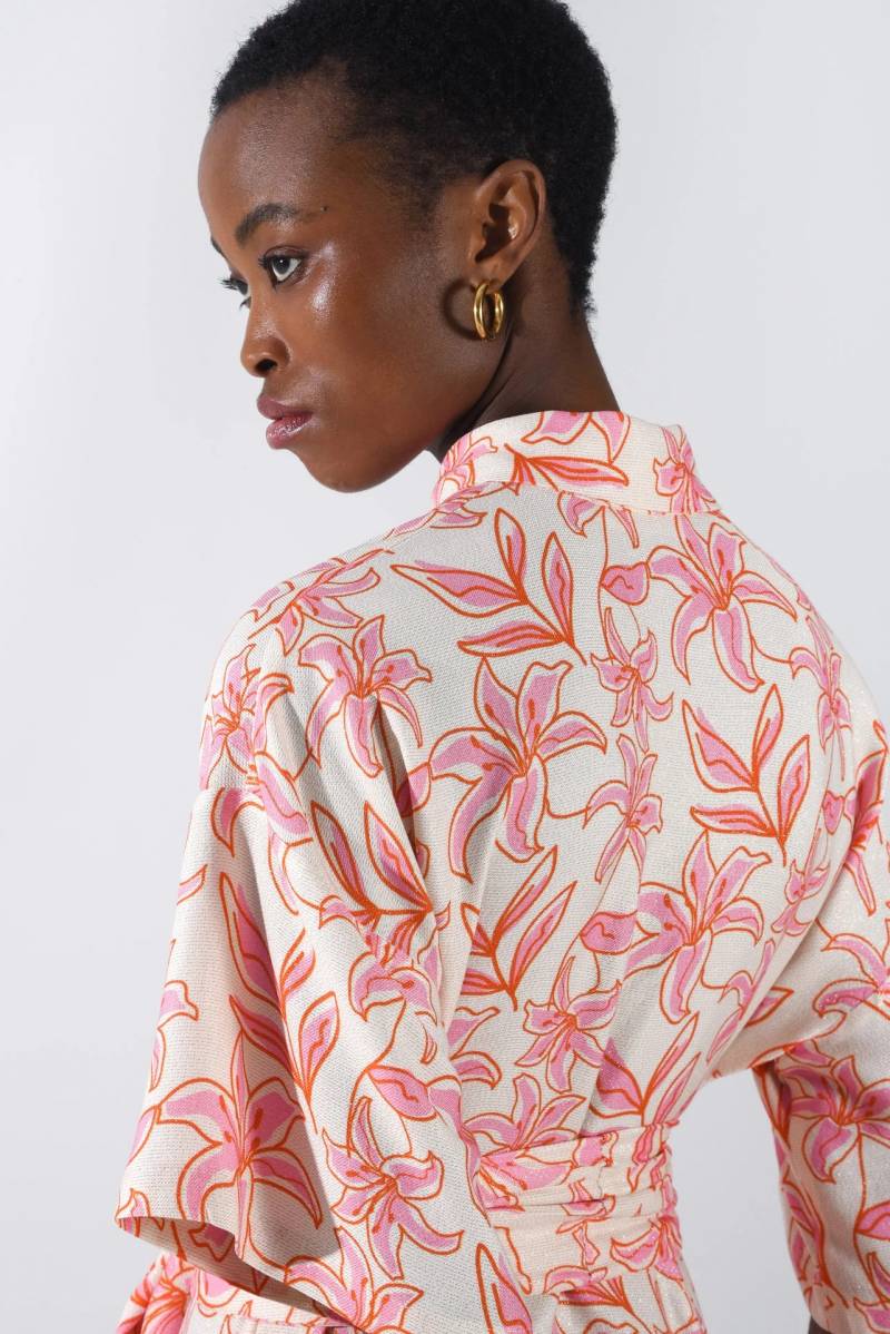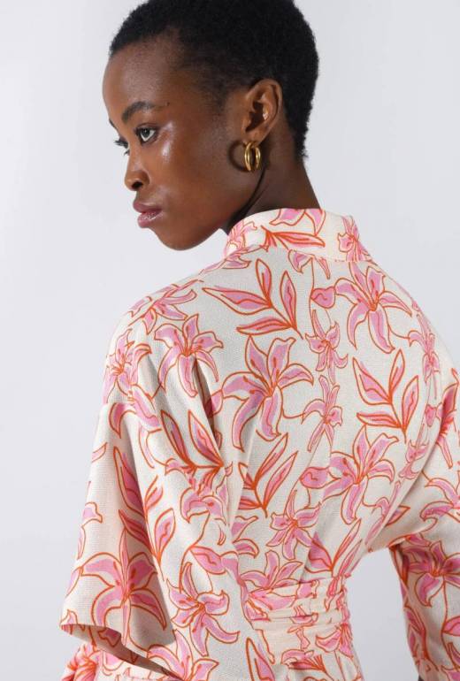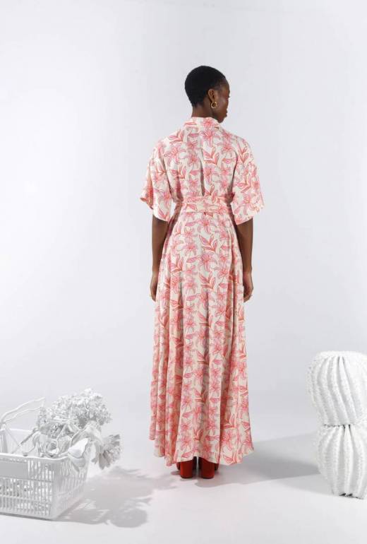 The Dylan maxi dress features a unique print adorned with graphic-inspired flowers. Crafted from lurex-viscose fabric, the dress exudes an elegant flow and movement, enhancing its overall allure.