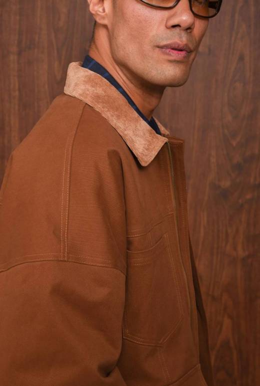 • The Obsessive Jacket blends structure with a relaxed attitude. Crafted from heavy cotton twill, it features a soft corduroy collar, front zip closure, and four utility pockets for a functional look. Designed in a relaxed, oversized fit, it combines comfort and structure for an easy, modern look.