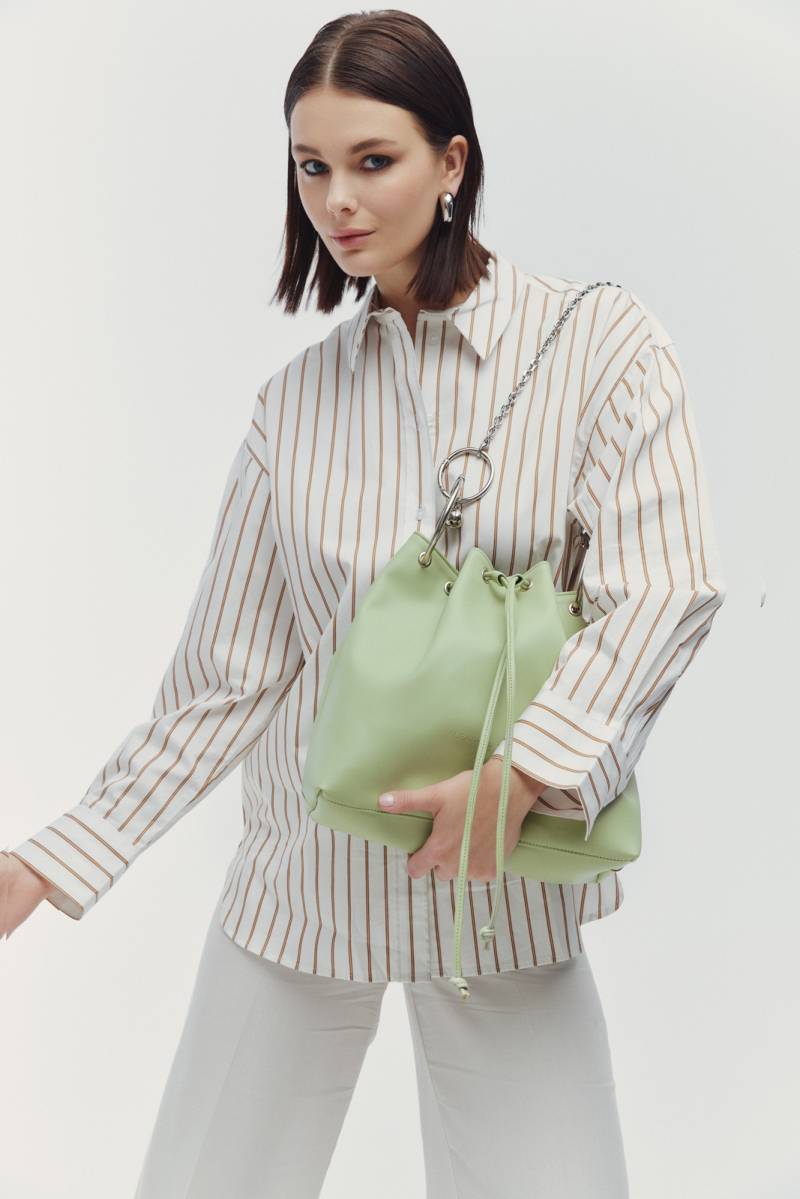 ARIA LARGE OLIVE ΤΣΑΝΤΑ γυναικεία πουγκί. Διαθέτει δύο χειρολαβές σε σχήμα κρίκου. Μπορεί ωστόσο να κρατηθεί και από την αλυσίδα της και να περαστεί στον ώμο. Η αλυσίδα αυτή είναι αποσπώμενη και μπορεί να χρησιμοποιηθεί ως charm σε οποιαδήποτε άλλη τσάντα σας. Έχει και μακρύ λουρί για να φοριέται χιαστί. Διαθέτει φόδρα στο εσωτερικό της. Ανοιγοκλείνει από τα κορδόνια της κάνοντας σούρα. Στο εσωτερικό υπάρχει μία μικρή θήκη . ΛΕΠΤΟΜΕΡΕΙΕΣ ΚΑΙ ΦΡΟΝΤΙΔΑ: - Ανακυκλωμένο δέρμα.