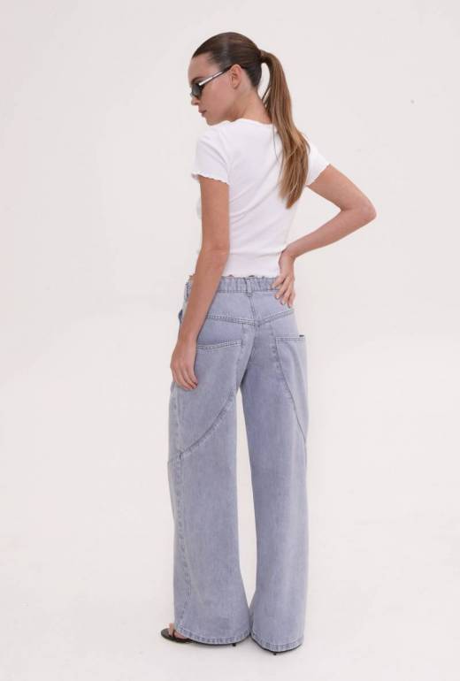 Το Spencer Jeans είναι το statement wide-leg denim που ξεχωρίζει για τη σύγχρονη γραμμή και τις ιδιαίτερες ραφές του. Με άνετη εφαρμογή στη μέση και φαρδύ, δυναμικό τελείωμα, δημιουργεί μια επιμηκυμένη σιλουέτα με fashion χαρακτήρα.Οι διαγώνιες ραφές και τα design κοψίματα στο πόδι δίνουν κίνηση και μοναδικότητα στο look, κάνοντάς το ιδανικό για πιο elevated καθημερινά σύνολα. Φοριέται άνετα από το πρωί μέχρι το βράδυ και προσαρμόζεται εύκολα ανάλογα με το styling.Ένα denim που δεν περνά απαρατήρητο.Λεπτομέρειες:•Denim ύφασμα•Mid to high-rise εφαρμογή•Wide-leg γραμμή•Ιδιαίτερες διαγώνιες ραφές•Πλήρες μήκος•Κλείσιμο με κουμπί & φερμουάρ•Τσέπες μπροστά & πίσωΔιαθέσιμο σε: Light Blue & Platinum Grey
