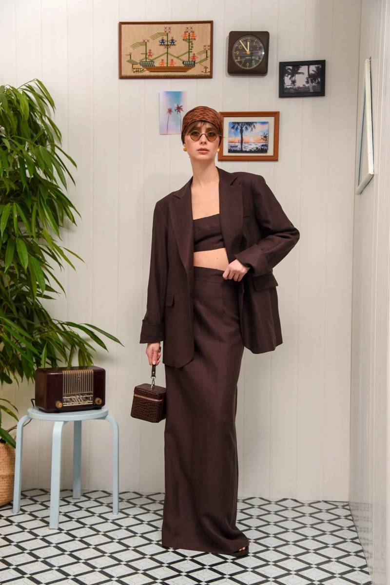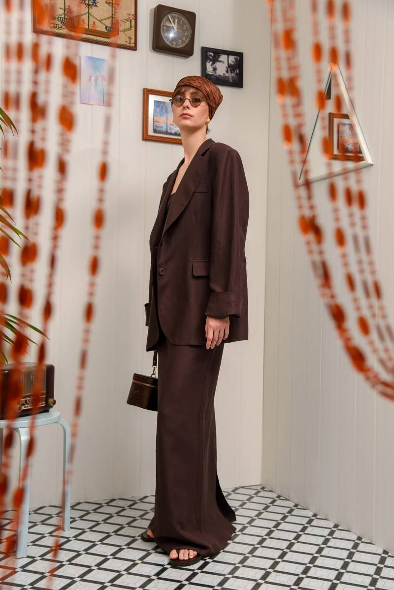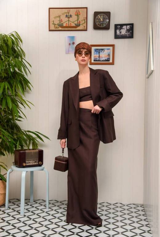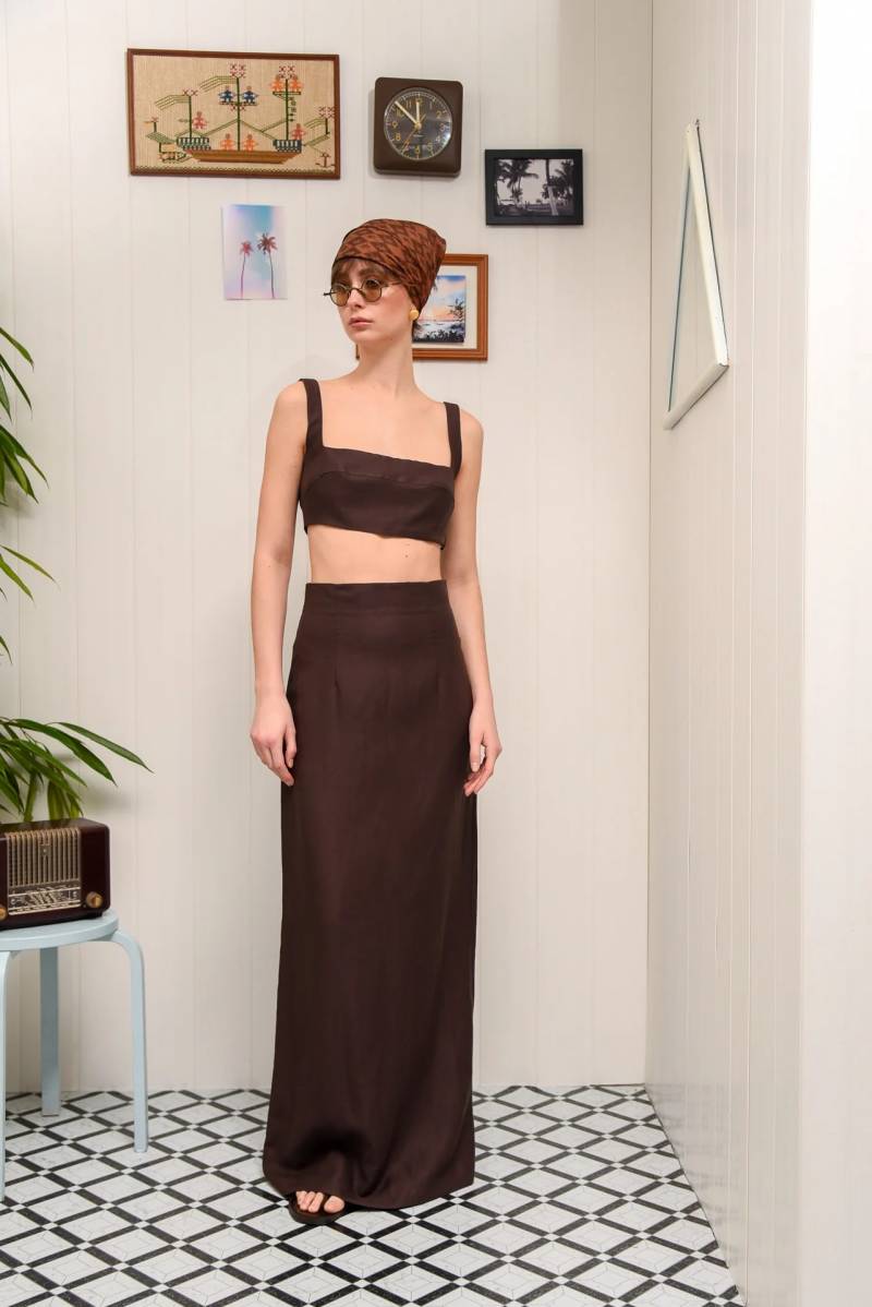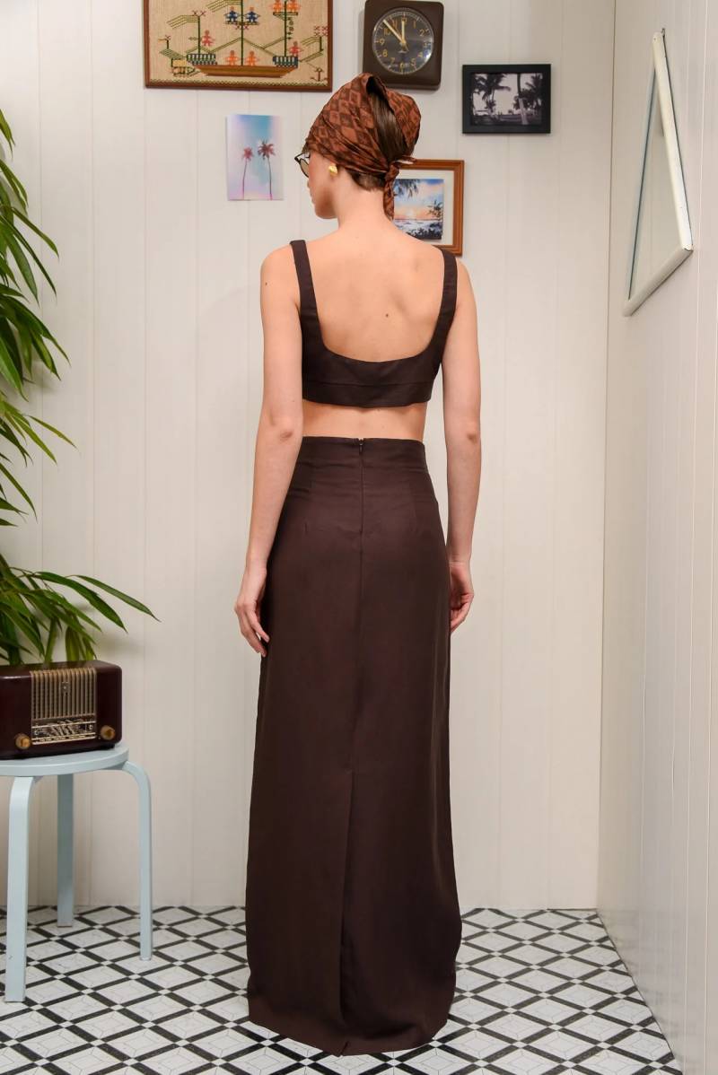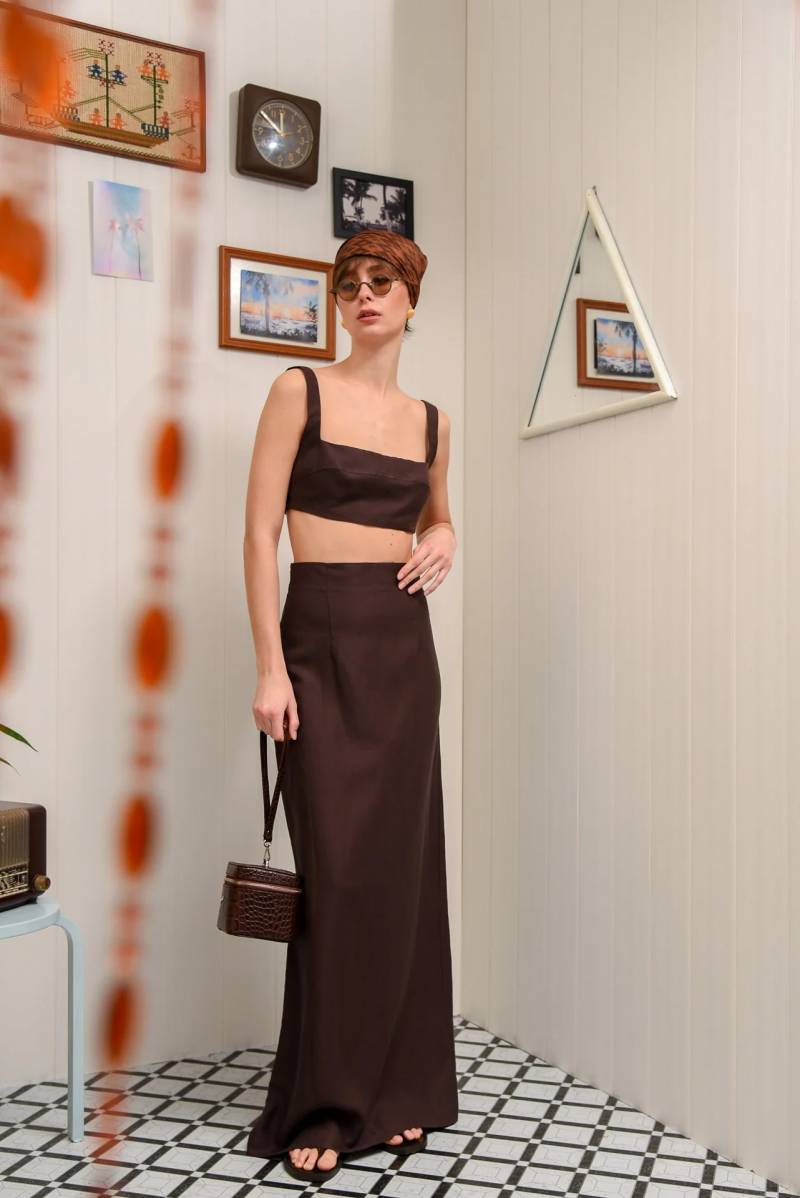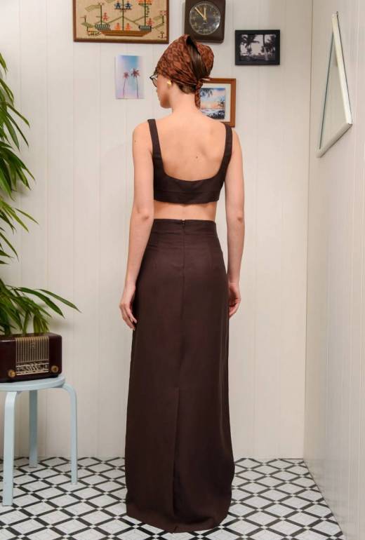 • The Coconut Milk Skirt is effortlessly elegant with its high-waisted, maxi-length silhouette. Crafted from lightweight, breathable fabric, it drapes beautifully for a flattering fit. Featuring a discreet back zipper and a subtle back slit for ease of movement, this versatile piece pairs perfectly with the matching top or blazer for a refined, modern look.