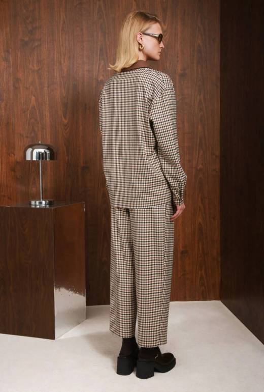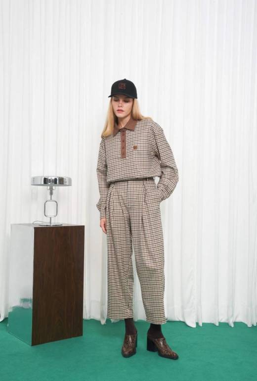 The Observer Polo Blouse is made from soft cotton with a black and white gingham pattern. It features a classic polo collar and button placket in brown, long sleeves with buttoned cuffs, and a relaxed fit for everyday comfort. Finished with a small "ARPYES" patch on the chest for a clean look.