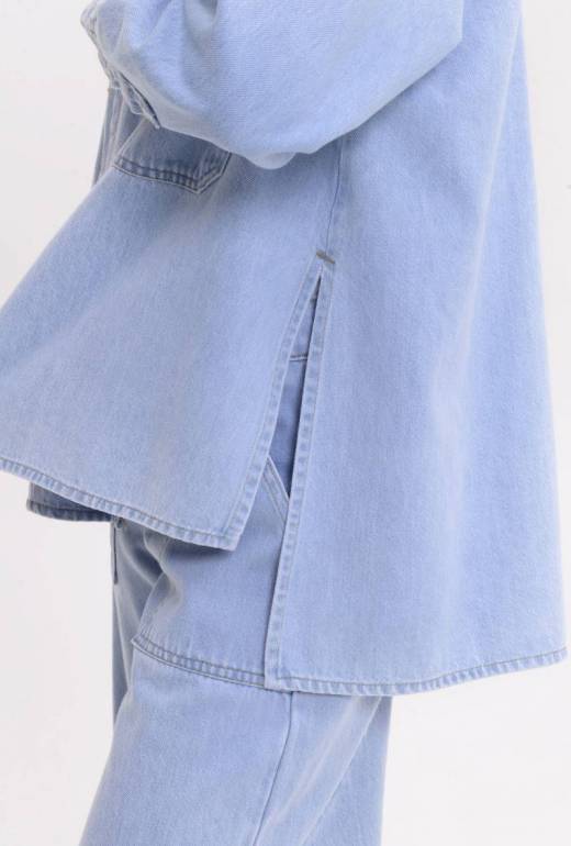 Το Veronica Jacket επαναπροσδιορίζει το denim layering μέσα από καθαρές γραμμές και σύγχρονη oversized σιλουέτα. Σχεδιασμένο να φοριέται ανοιχτό, δημιουργεί effortless κίνηση και δομή σε κάθε look.Οι statement μπροστινές τσέπες και η minimal κατασκευή του δίνουν μοντέρνα utility αισθητική, ενώ η relaxed εφαρμογή του επιτρέπει layering χωρίς να βαραίνει τη σιλουέτα. Ιδανικό για total denim σύνολα αλλά και για αντίθεση πάνω από πιο θηλυκά κομμάτια.Ένα fashion-forward essential που ισορροπεί ανάμεσα σε δομή και άνεση.